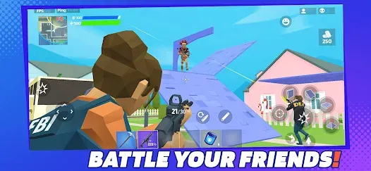 - Building Mechanics: Construct walls, ramps, and floors to gain tactical advantage.