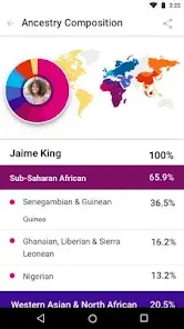 Comprehensive ancestry analysis with regional breakdowns.
