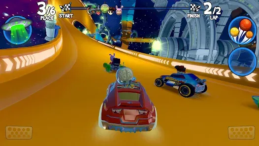Power-Ups and Weapons: Collect items during races to gain advantages.