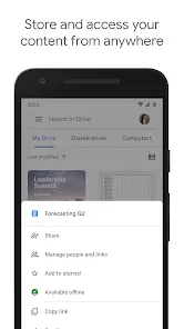 Offline access to files and Google Docs, Sheets, and Slides.