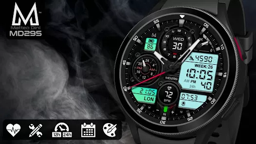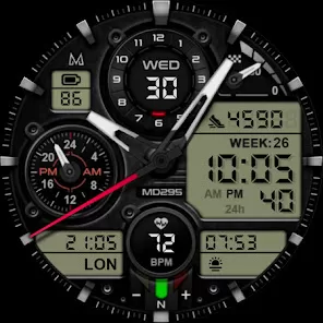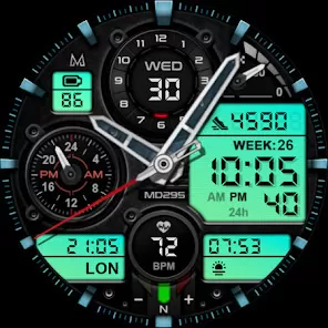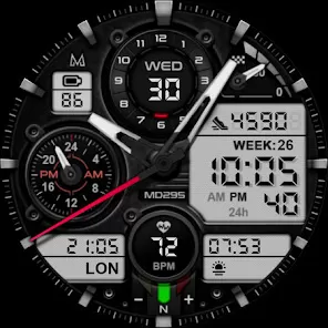 - Download and install MD295 Analog Watch Face from your smartwatch’s app store or compatible platform.