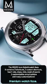 MD295 Analog Watch Face is a stylish and functional watch face designed for smartwatches that support custom designs. It features a classic analog layout with modern enhancements such as date, battery level, and customizable color themes. The watch face is optimized for readability and aesthetic appeal, offering users a sleek and professional look on their wearable device. With smooth animations, responsive design, and compatibility with popular smartwatch platforms, MD295 Analog Watch Face allows users to personalize their smartwatch experience while maintaining a functional interface for timekeeping, notifications, and basic smartwatch features. It is ideal for users who prefer elegance and simplicity combined with utility.