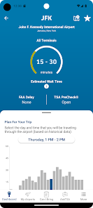 Check airport wait times and security alerts before your trip.