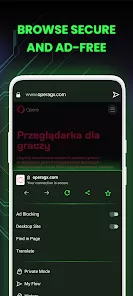 - Enable the built-in ad blocker and VPN for secure browsing.