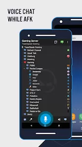 - Navigate channels to participate in voice chats or text messaging.